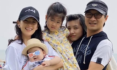 Chương Tử Di bên chồng và ba con.