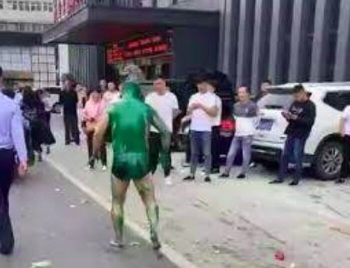 Đổ sơn xong, cả nhóm mới mở lồng sắt để chú rể ra ngoài. Vào thời điểm xảy ra sự việc, xung quanh có khá nhiều người chứng kiến nhưng ai cũng tỏ vẻ hả hê, thậm chí còn lấy điện thoại ra quay lại. Sau khi được chia sẻ trên mạng xã hội, sự việc trên đã nhanh chóng gây bão mạng xã hội Trung Quốc. Hầu hết mọi người đều tỏ ra bức xúc, hy vọng tục náo tân hôn này sẽ sớm bị loại bỏ.