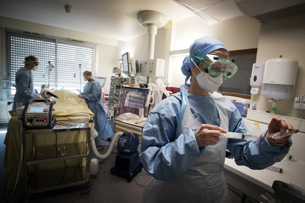 Nhân viên y tế chăm sóc bệnh nhân Covid-19 ở Paris hồi tháng 4. Ảnh: AFP.