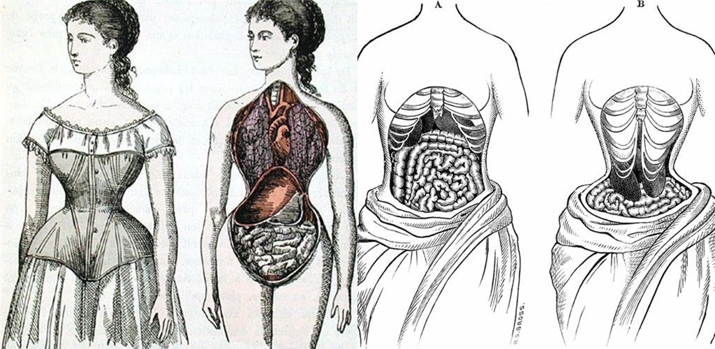 Chỉ vì để thỏa mãn nhu cầu của đàn ông châu Âu thế kỉ XVIII – XIX, phụ nữ thời đó đã bó eo mình trong những chiếc áo corset để khoe trọn vòng eo con kiến bé tí và trở thành hiệu ứng thời trang càn quét khắp châu lục. Đàn ông tuyển vợ sẽ nhìn vào vòng eo mà quan niệm rằng phụ nữ nào có vòng eo càng nhỏ thì sinh con ra sẽ rất thông minh và khỏe mạnh.