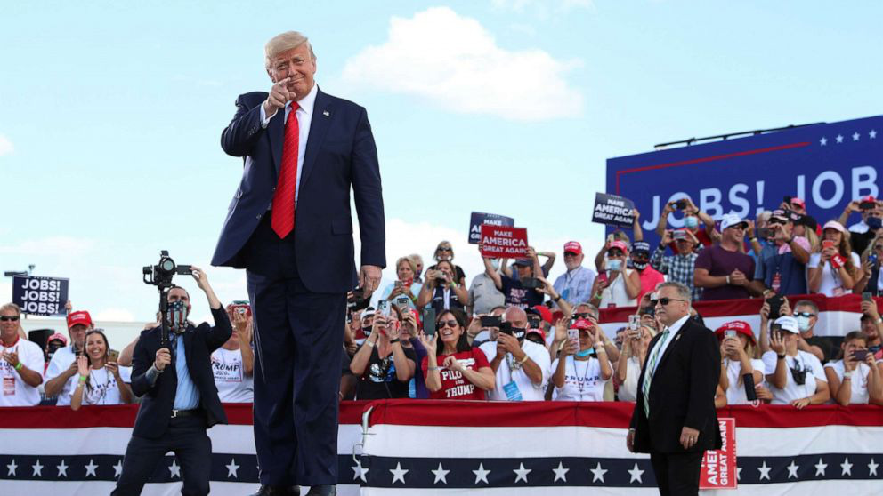 Ông Trump ít đề cập đến đại dịch Covid-19 tại các cuộc mít tinh, ngoại trừ nói về cuộc chiến chống lại căn bệnh chết người này và nỗ lực mở cửa lại các tiểu bang.