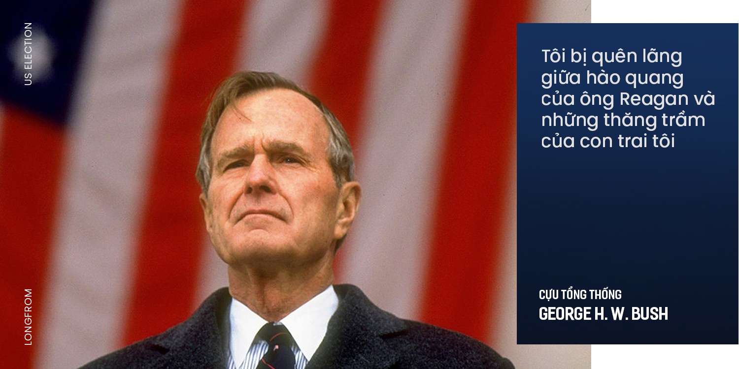 “Tôi bị quên lăng giữa hào quang của ông Reagan - tượng đài khắp nơi, kèn trống, anh hùng - và những thăng trầm của con trai tôi”, ông Bush từng nói với người viết tiểu sử.