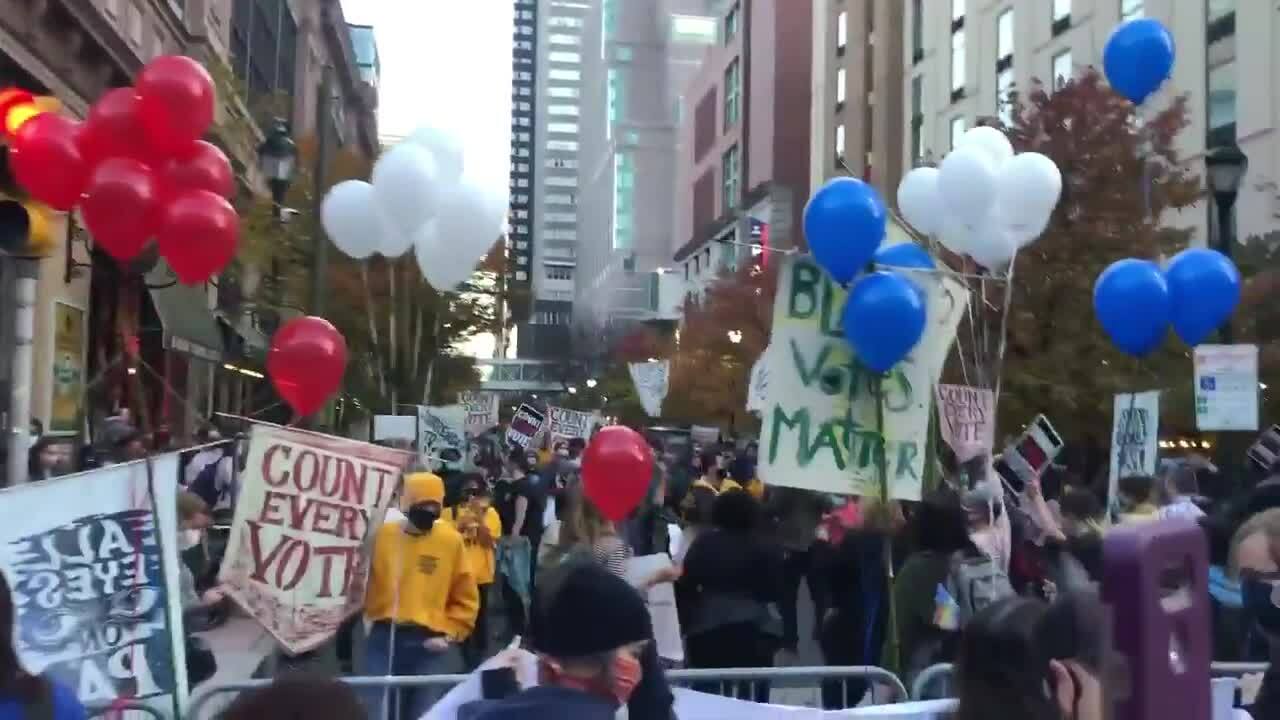 Một số người ủng hộ Tổng thống Donald Trump cũng có mặt và hét lên "4 năm nữa", trong khi người ủng hộ Biden đáp trả: "Kiểm mọi phiếu bầu!" và tiếp tục nhảy. Bên này dường như cố hét to hơn bên kia.
