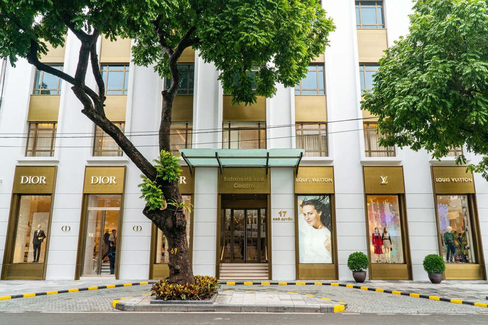 Cửa hàng flagship của Louis Vuitton và Christian Dior có diện tích lần lượt 1.000 m2 và 500 m2, được đặt tại toà nhà International Center.