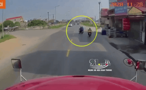 Xe container bấm còi sát đuôi, vợ cuống cuồng nhảy xuống thoát thân trước
