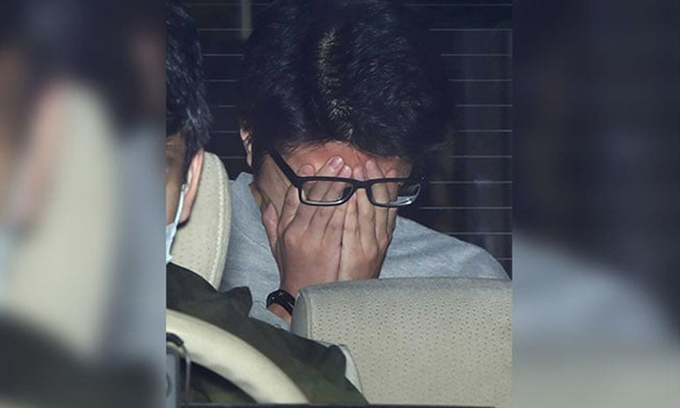 Shiraishi che mặt khi bị áp giải đến văn phòng công tố ở Tokyo hồi tháng 11/2017. Ảnh: AFP.
