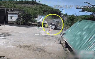 Cú đâm khiến xe 16 chỗ bị đẩy đi một đoạn đường, rồi lộn nhiều vòng trước khi lao vào vệ đường. Chưa dừng lại ở đó, ô tô tải tiếp tục di chuyển về phía trước một đoạn đường rồi lao sang bên phải trước khi có pha lật nghiêng kinh hoàng.