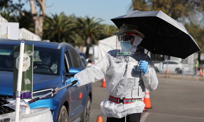 Nhân viên y tế Mỹ tại một điểm xét nghiệm Covid-19 ở Los Angeles, bang California hôm 1/12. Ảnh: Reuters.
