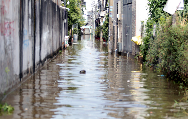 Nhiều con hẻm trên đường 38 cũng bị ngập.