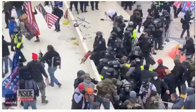 Người đàn ông này sau đó được cho là đã ném bình cứu hỏa về phía các cảnh sát bảo vệ Đồi Capitol. Bình cứu hỏa này rơi trúng vào đầu sĩ quan William Young, người đang đội mũ bảo hộ, rồi văng ra và trúng hai cảnh sát khác.