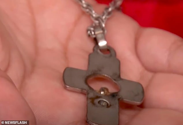 Chiếc vòng cổ còn nguyên lỗ đạn bắn của Tiziano (ảnh: Daily Mail)