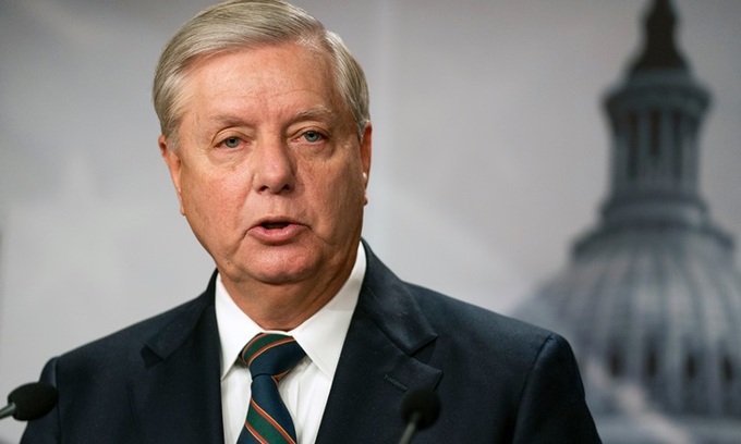 Thượng nghị sĩ Lindsey Graham tại cuộc họp báo ở ṭa nhà quốc hội tháng trước. Ảnh: AP.