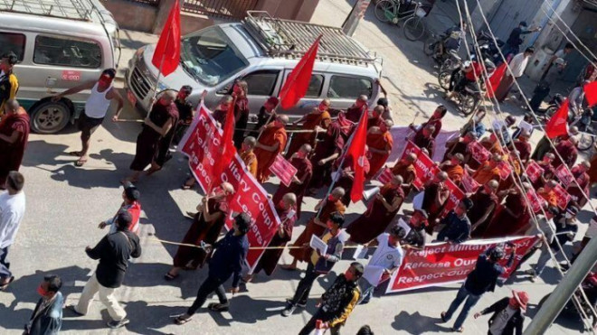 Biểu tình phản đối quân đội đảo chính tại Myanmar