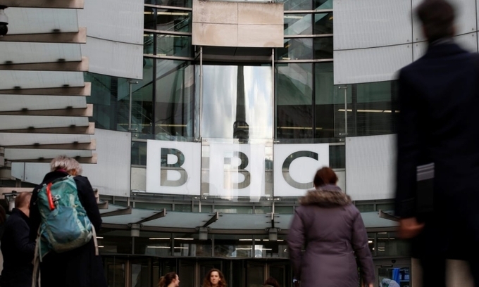 Người dân đi lại trước trụ sở BBC ở London, Anh, hồi tháng 1/2020. Ảnh: Reuters.