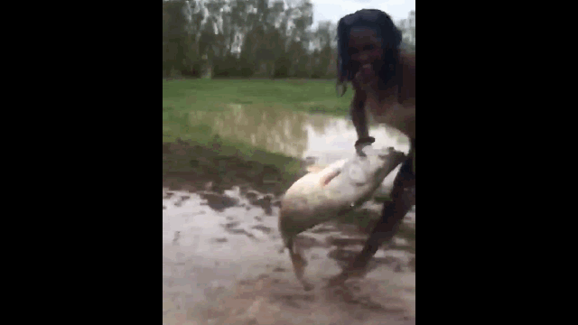 Ba cô gái dùng tay không bắt cá "khủng" dài hơn 1 mét