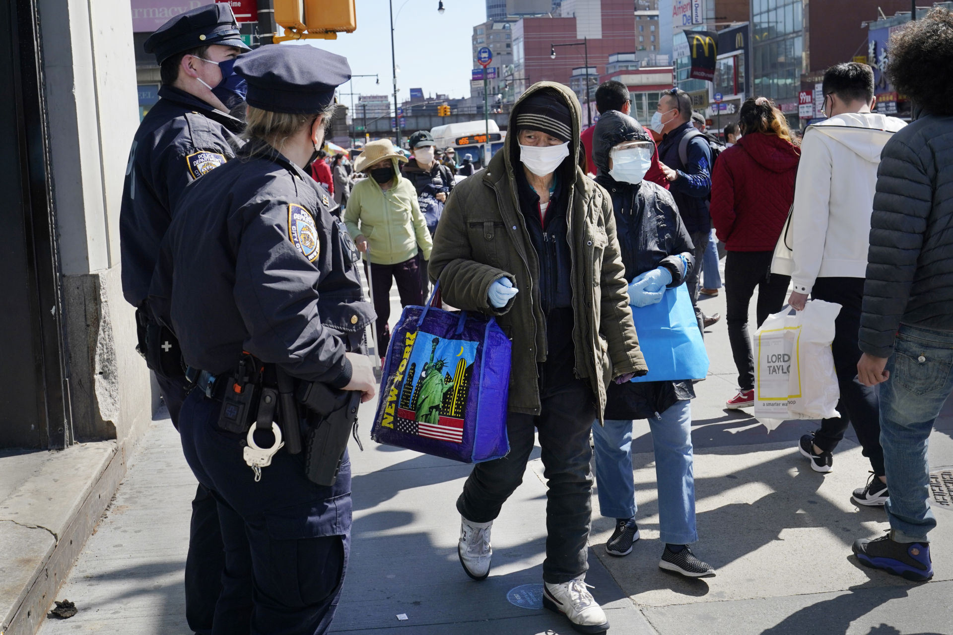 Cảnh sát tăng cường tuần tiễu ở khu Flushing, thành phố New York. (Hình: AP Photo/Kathy Willens)