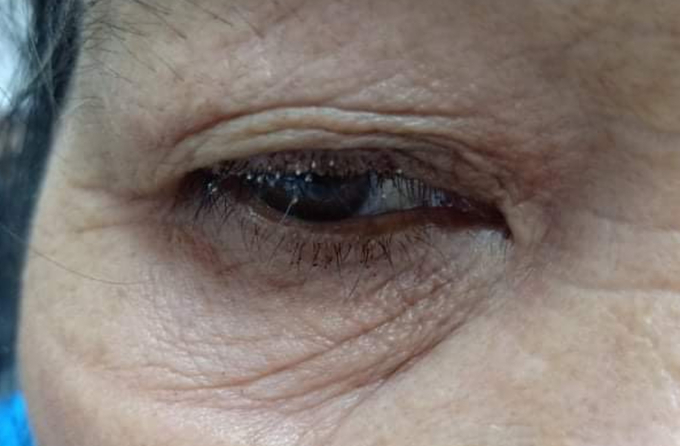 Người phụ nữ 62 tuổi ở Tây Ninh bị rận mu ký sinh trên mi mắt đẻ hàng chục quả trứng, bám trắng các sợi lông mi, trông ghê hết cả người.