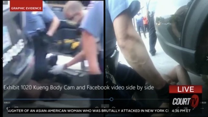Hai đoạn phim mà anh ta đã phát là của thiếu niên Darnella Frazier và đoạn phim quay lén cảnh sát của cựu Sĩ quan Alexander Kueng. Trong đoạn video do Frazier ghi lại, góc quay cho thấy đầu gối của viên cảnh sát đang ở trên cổ Floyd, tuy nhiên, trong cảnh quay của camera chính vào thời điểm đó, bạn có thể thấy rõ đầu gối của anh ta nằm trên vai tên tội phạm.