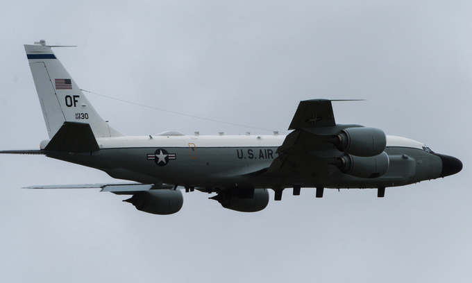 Trinh sát cơ RC-135W của Mỹ bay qua khu vực Biển Đông và giám sát quân đội Trung Quốc diễn tập bắn đạn thật tại đây.
