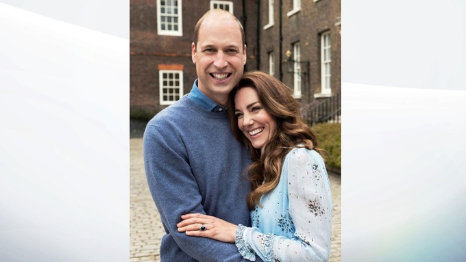 Bức ảnh thứ hai được chụp khi hai vợ chồng nắm tay nhau, William nh́n vợ đầy tŕu mến.William, 38 tuổi và Kate, 39 tuổi, kết hôn tại Tu viện Westminster vào 29/4/2011. Hai người quen nhau tại trường đại học, hẹn ḥ hơn 7 năm. Sau 10 năm kết hôn, họ sinh được ba người con gồm Hoàng tử George 7 tuổi, Công chúa Charlotte 5 tuổi và Hoàng tử Louis 3 tuổi.