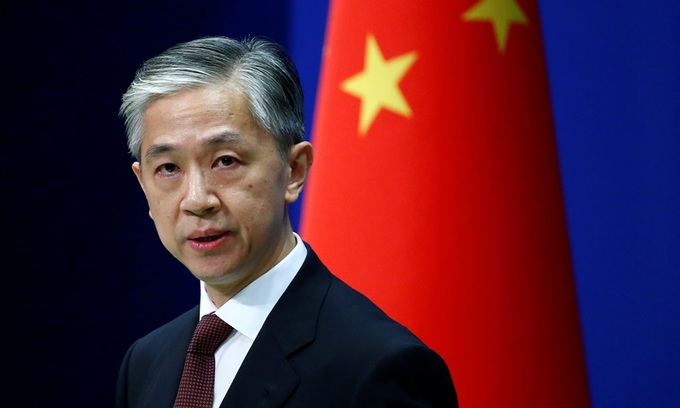 Phát ngôn viên Bộ Ngoại giao Trung Quốc Uông Văn Bân tại cuộc họp báo ở Bắc Kinh tháng 7/2020. Ảnh: Reuters.