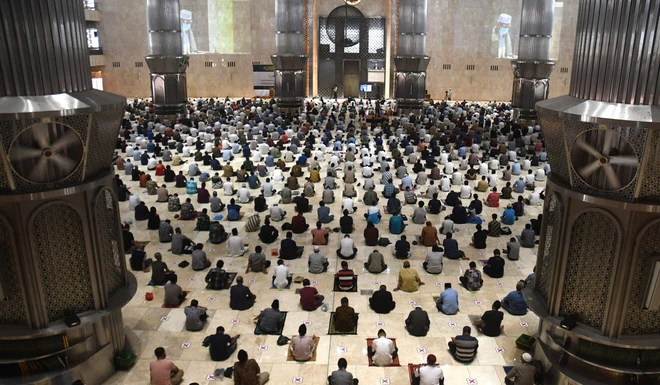 Người Hồi giáo cầu nguyện tại Nhà thờ Hồi giáo Istiqlal ở Jakarta trong tuần đầu tiên của tháng Ramadan. Ảnh: DPA