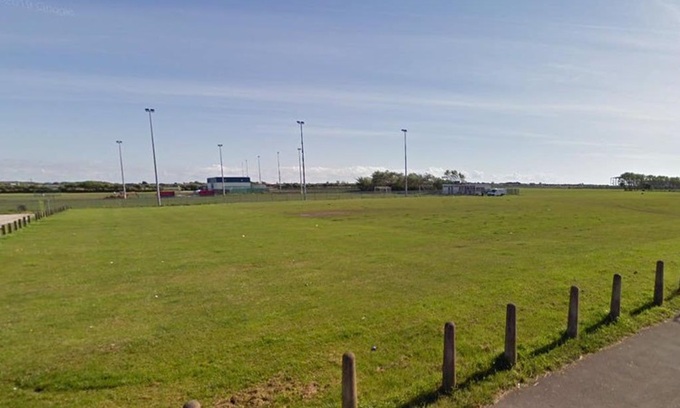 Sân bóng tại đường School Road, thị trấn Blackpool, tây bắc nước Anh, nơi bé trai 9 tuổi bị sét đánh chết hôm 11/5. Ảnh: PA.