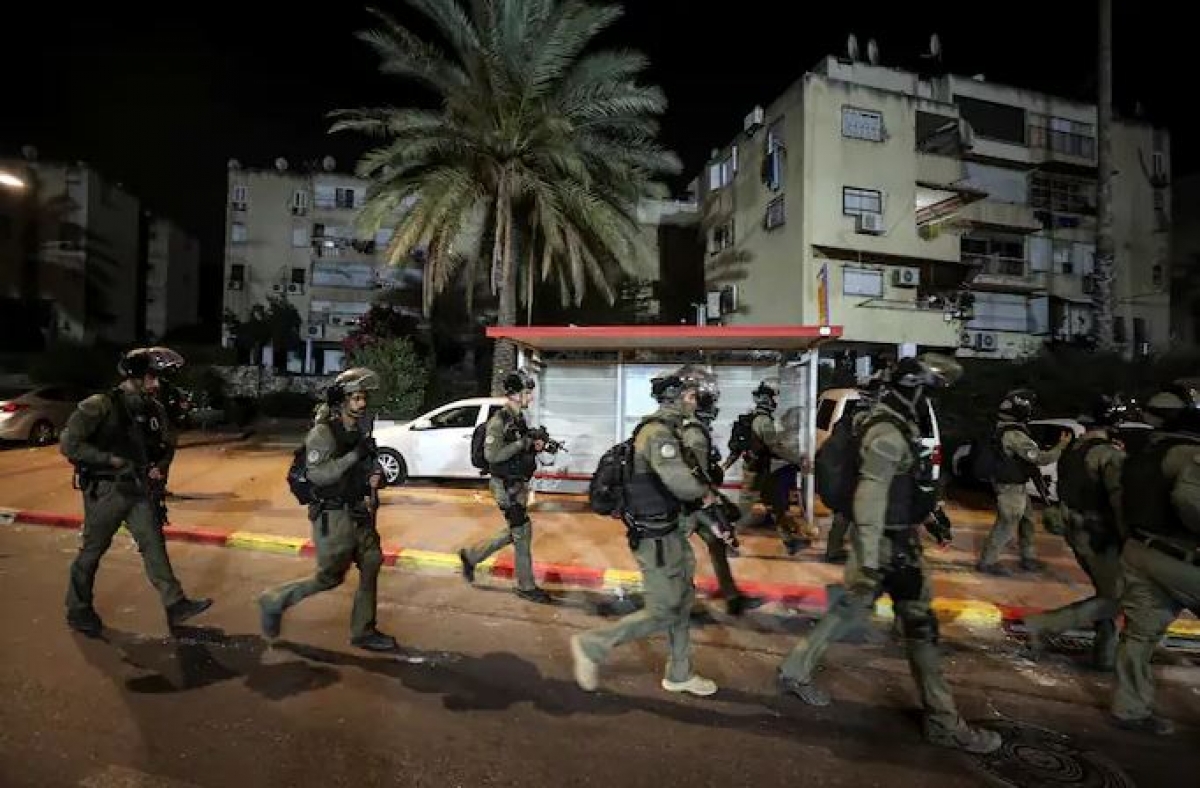 Lực lượng an ninh tuần tra ở Lod, Israel. Ảnh: Reuters
