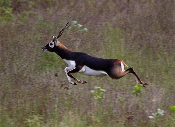 Linh dương đen Ấn Độ - Blackbuck, nổi bật với đôi sừng xoắn dài có hình chữ V. Chúng có thể đạt tới tốc độ kinh ngạc, tối đa 80km/giờ.