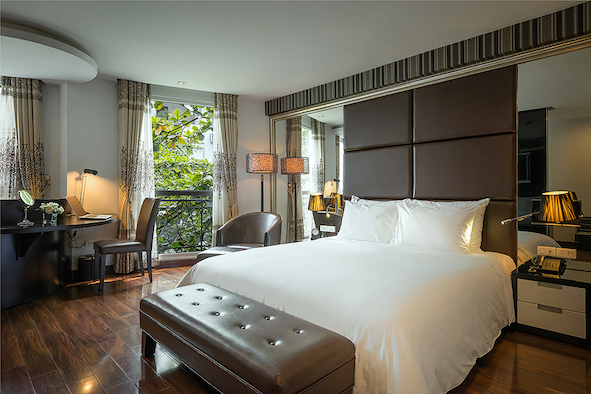 Khách sạn này nằm trên phố Ḷ Sũ, ngay giữa ḷng phố cổ Hà Nội, cách Hồ Gươm chỉ 2 phút đi bộ, có phong cách trang nhă, hiện đại và quy mô của một khách sạn boutique.