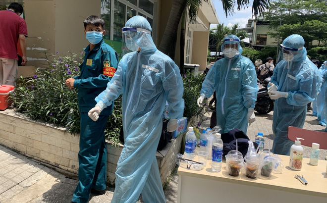 ****.vn cho hay, hàng chục nhân viên y tế được điều động đến chung cư để lấy mẫu xét nghiệm SARS-CoV-2 cho toàn bộ cư dân nơi này. Cư dân được yêu cầu xuống tầng trệt để lấy mẫu. Các trường hợp đặt biệt, lực lượng chức năng sẽ đến từng căn hộ để lấy mẫu xét nghiệm.