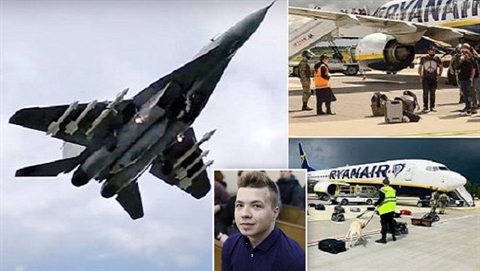 Phía Belarus viện dẫn lư do được cảnh báo có bom đặt trên chiếc máy bay này. Chiếc máy bay rồi được phép cất cánh bay đi, nhưng hai hành khách là nhân vật đối lập người Belarus Raman Pratasevich và bạn gái bị chính quyền Belarus bắt giữ.