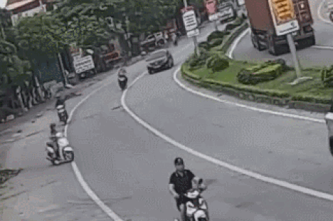 Cùng thời điểm, một người đàn ông đi xe máy chạy đến từ phía sau đã không kịp xử lý nên đã tông vào người phụ nữ này, khiến cả 2 bị ngã ra đường.