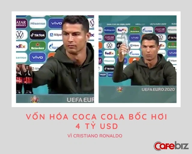 Tuy nhiên, 30 phút sau khi Ronaldo có mặt ở buổi họp báo và có hành động như kể trên, cổ phiếu công ty này đã giảm xuống còn 55,22 USD/1 cổ phiếu.