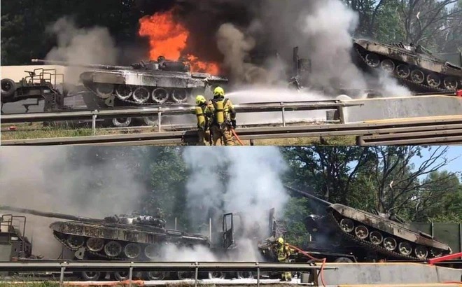 Tsargrad cho biết, các xe chở xe tăng đã bị va chạm trên đường cao tốc. Không có thương vong về người trong vụ việc. Hình ảnh chia sẻ trên Twitter ngày 19/6 cho thấy các nhân viên cứu hỏa đang nỗ lực dập tắt ngọn lửa.