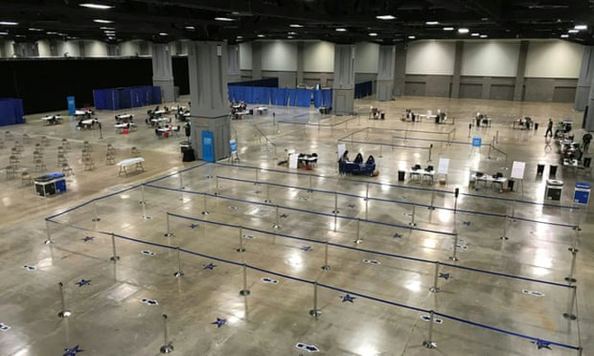 Một trung tâm tiêm chủng ở thủ đô Washington vắng bóng người hồi đầu tháng này (Ảnh: AFP).