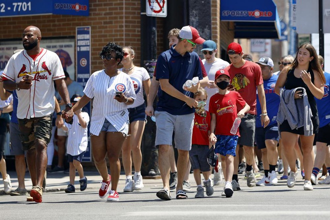 Người dân tại Chicago đang trên đường tới sân vận động Wrigley để xem một trận đấu bóng chày vào ngày 11/6. Ảnh: AP.
