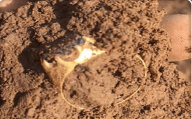 Thấy có thứ phát sáng dưới cát, người đàn ông vì tò mò nên đã quyết định nhặt lên xem.