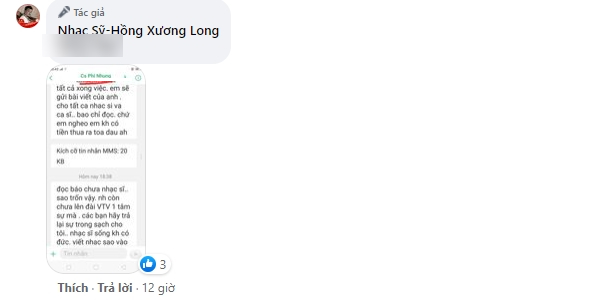 Nội dung tin nhắn mà Nhạc sĩ Hồng Xương Long cung cấp bên dưới bài viết - Ảnh: FBNV