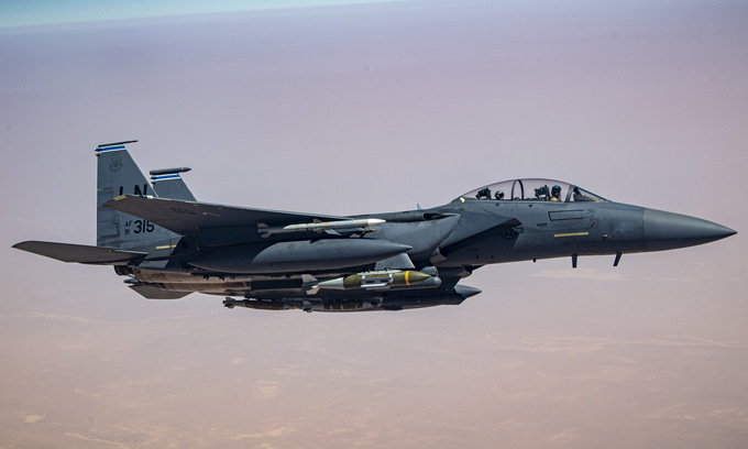 Tiêm kích F-15E Mỹ làm nhiệm vụ tại Trung Đông. Ảnh: USAF.