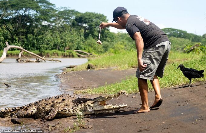 Để thu hút du khách đến với sông Tarcoles ở Costa Rica, Guido làm tour khám phá và tự mình nhử mồi cá sấu cho khách xem.