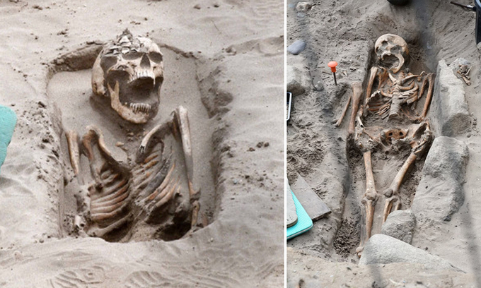 Hai trong số 200 bộ xương người được khai quật ở Whitesands Bay. Ảnh: Wales News Service.