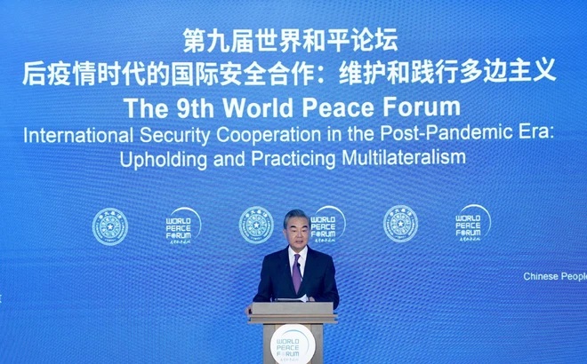 Ngoại trưởng Trung Quốc Vương Nghị phát biểu tại Diễn đàn Ḥa b́nh Thế giới lần thứ 9, tổ chức tại Bắc Kinh, Trung Quốc, ngày 3/7/2021 (Ảnh: Xinhua)