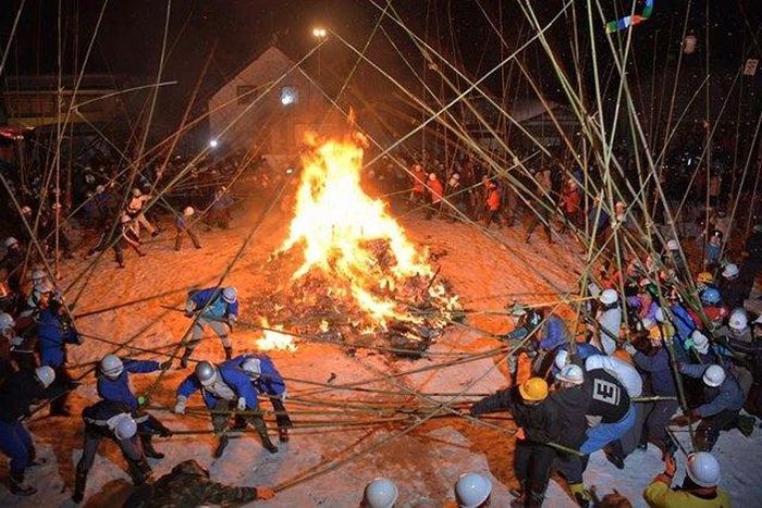 Lễ hội tàn bạo này diễn ra ở Nhật Bản, nơi những người tham gia được chia thành hai nhóm và thường chiến đấu với nhau bằng cọc tre.
