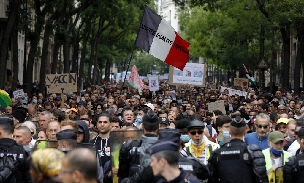 Khoảng 114.000 người xuống đường khắp nước Pháp phản đối kế hoạch tiêm chủng bắt buộc được Tổng thống Macron công bố nhằm ngăn làn sóng Covid-19 mới.