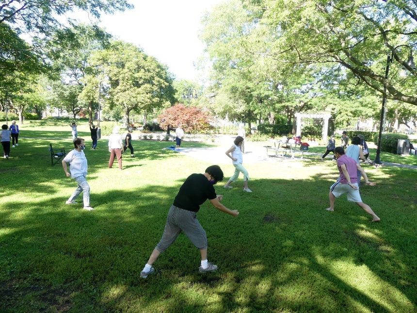 Lớp yoga của tôi chuyển lên Zoom. Tôi cũng tham gia một nhóm thiền, yoga và khí công cho người Việt Nam lớn tuổi. Các cô bác cùng chúng tôi tập ở công viên cho đến khi mùa đông 2020-2021 tới.