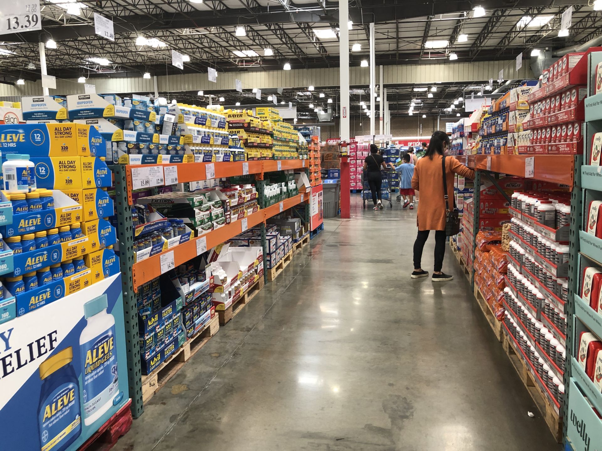 Thuốc đau nhức, thuốc bổ là những mặt hàng được mua nhiều nhất. H́nh chụp tại Costco ngày 19 Tháng Bảy. (H́nh: Đoan Trang/Người Việt)