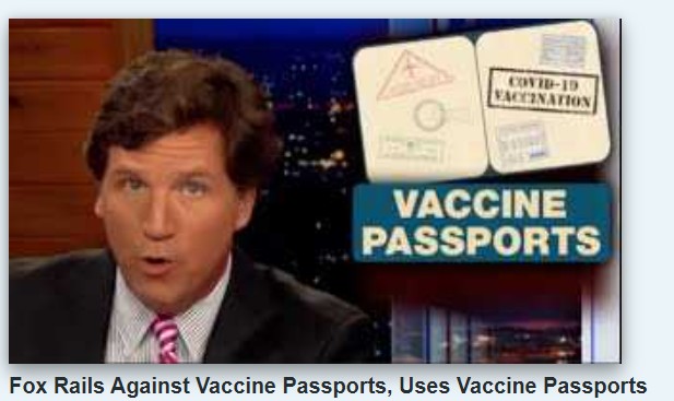Tuy nhiên, lặng lẽ, Đài Fox News từ tháng trước đă lập ra chương tŕnh "thông hành chích ngừa" (vaccine passport program) để bảo vệ nhân viên trong đài.