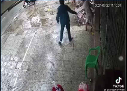 Theo đó, sự việc diễn ra tại một ngõ bị dựng chốt phong tỏa. Để tránh người dân đi lại, lực lượng chức năng còn cẩn thận chăng rào thép gai và đặt một tấm biển lớn chắn ngang ngõ. Dân quân ngồi bên ngoài nghe thấy tiếng động, giật mình quay lại thì thấy một người đàn ông gỡ rào, lật đổ tấm biển chắn rồi thản nhiên dắt xe đạp đi ra.
