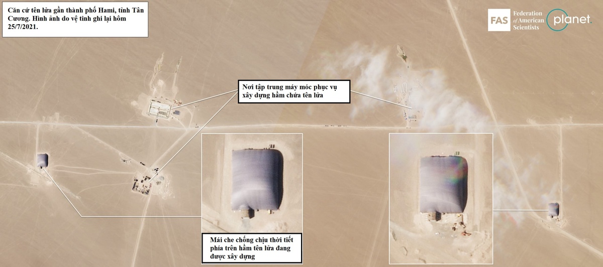 Căn cứ tên lửa ở thành phố Hami, tỉnh Tân Cương. Nguồn: Hiệp hội khoa học gia Mỹ.
